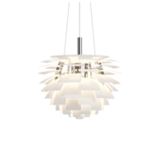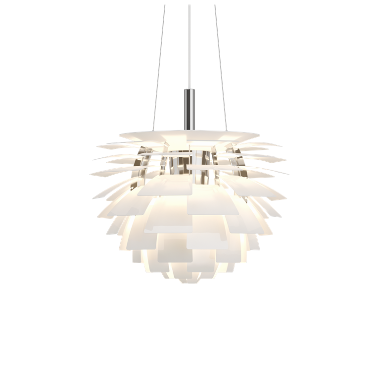 1958年、ポール・ヘニングセンがコペンハーゲンのレストラン“ランゲリニエ・パヴィリオン”のために設計した「PHアーティチョーク」。今日でもレストランを特徴するデザインアイコンとして、空間全体を飾っています。 どの角度から見ても完全にグレア・フリーの光を作りだす独特のフォルム。正確に配置された72枚の羽が、アーティチョークの名前を象徴しています。また、現在も製造プロセスの大部分が手作業で行われ、名作としての高い品質を生みだしています。 デザイン当初からの素材である銅タイプは、空間に温かみと雰囲気のある照明を提供します。ヘアライン仕上げとポリッシュ仕上げのステンレスタイプ、そして光沢あるホワイト塗装のタイプがその後加わり、PHアーティチョーク・ファミリーの多様性とタイムレスなシルエットをつくりだしました。2020年、PHアーティチョーク・ブラックが仲間入りしました。完全なマットブラック仕上げのブラック・ヴァージョンは、光のデザインとクオリティーに妥協することなく、エッジのきいたインテリアの大胆さを強めます。